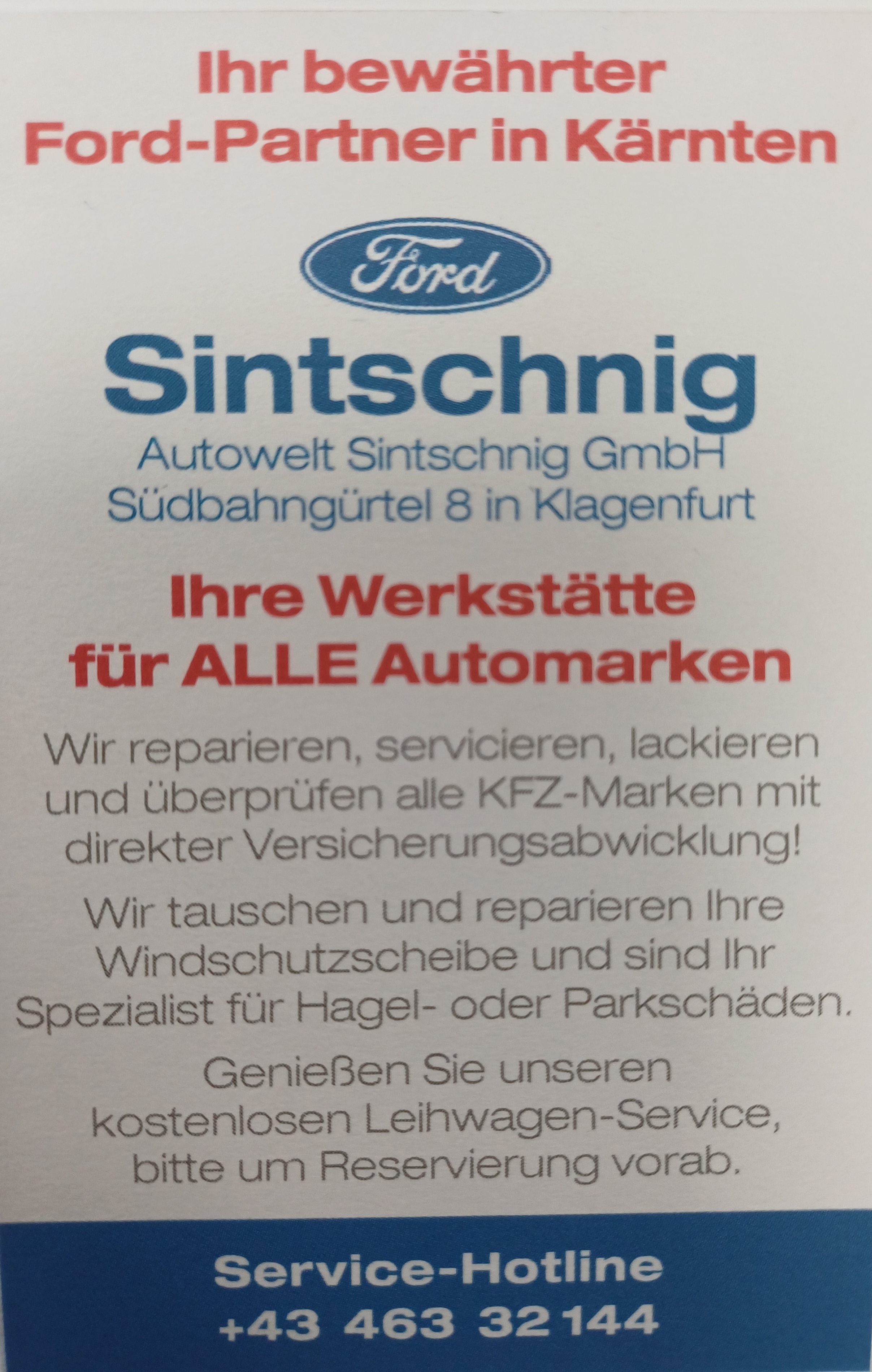 Das ist auch das Motto im Autohaus Sintschnig – und dazu kommen noch die attraktiven Ford-Modelle, bei denen wirklich alles stimmt: Qualität, Design, Ausstattung und auch der Preis.
