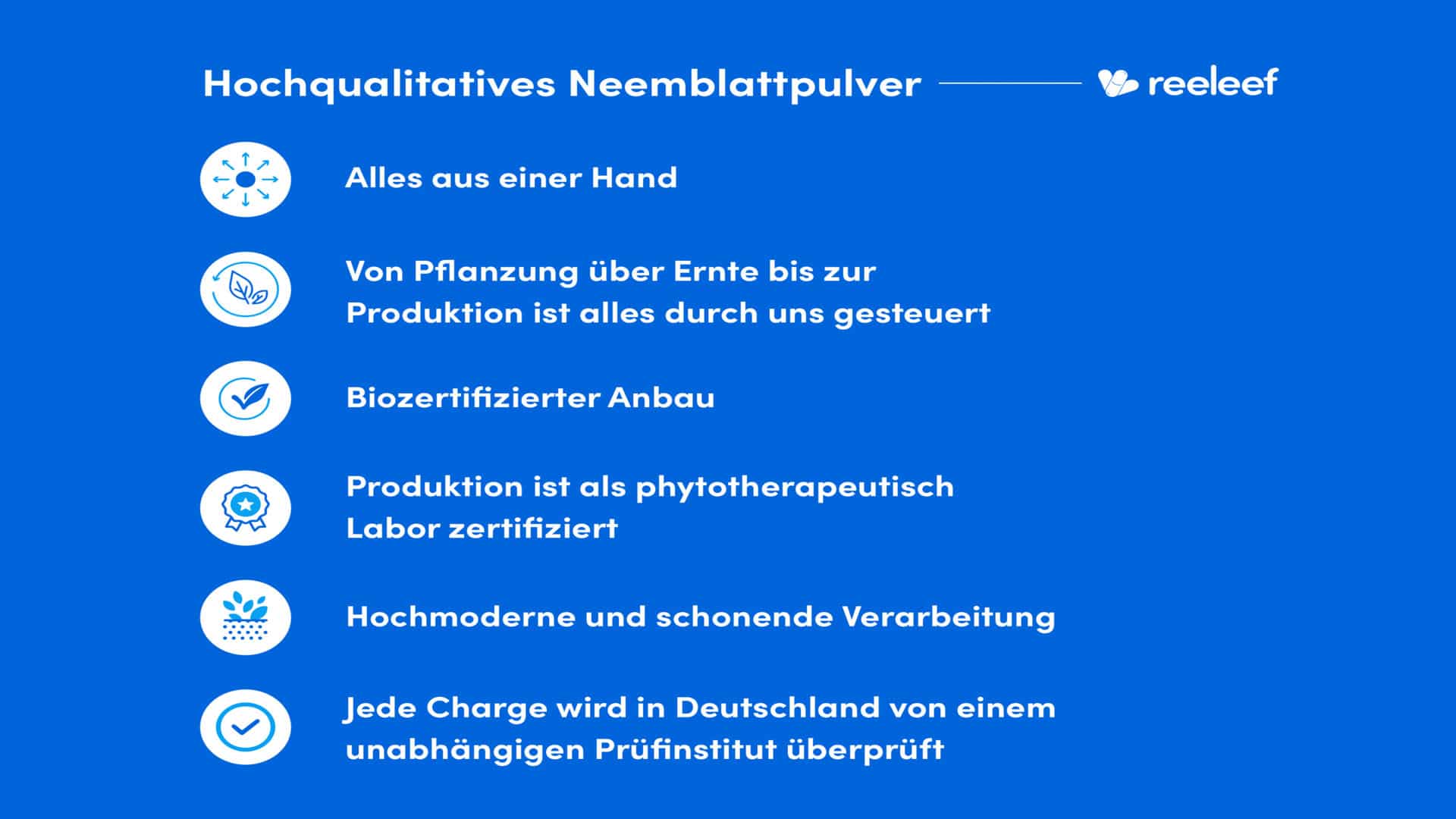 • Bio-zertifiziertes Neem direkt von unserer eigenen Farm in Paraguay
