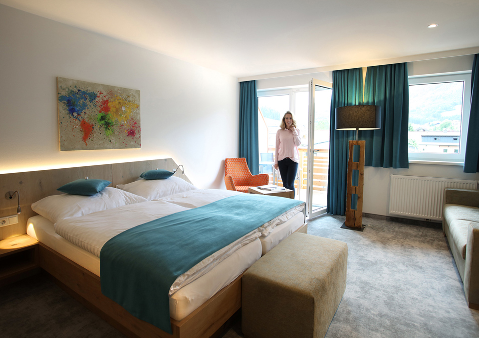Durch Verbindungstüren können manche Zimmer auch kombiniert als Familienzimmer genutzt werden. Sämtliche Zimmer sowie der Wellnessbereich sind mit dem Aufzug erreichbar.